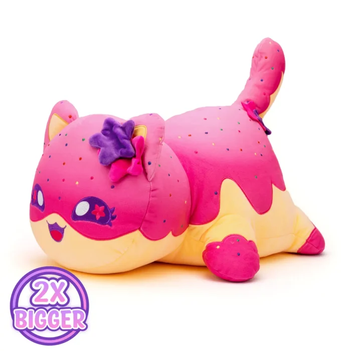 This Frosted Cookie Cat jumbo plushie and other Carnival Treats Aphmau MeeMeow pillow plush toys are officially licensed Aphmau merch! These pillowy stuffed animals feature cute embroidered faces and big, squishy bodies made from super soft material, perfect for any Aphmau fan. There are five 16-inch Carnival Treats MeeMeows to collect. Who will you add to your collection?