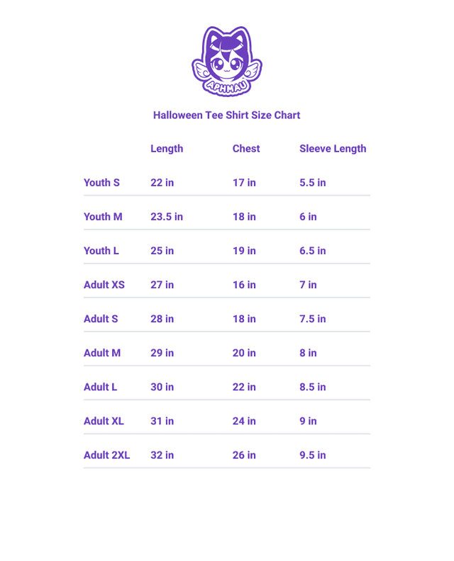 Eerie and adorable, this Halloween Tee is the ultimate treat! Relax in cozy comfort with this soft crew neck tee made from poly-cotton blend material! The spooky Halloween MeeMeow shirt is officially licensed merch and features a cool graphic print design! Available in youth and adult sizes, this t-shirt is perfect for kids, adults, and any Aphmau fan!