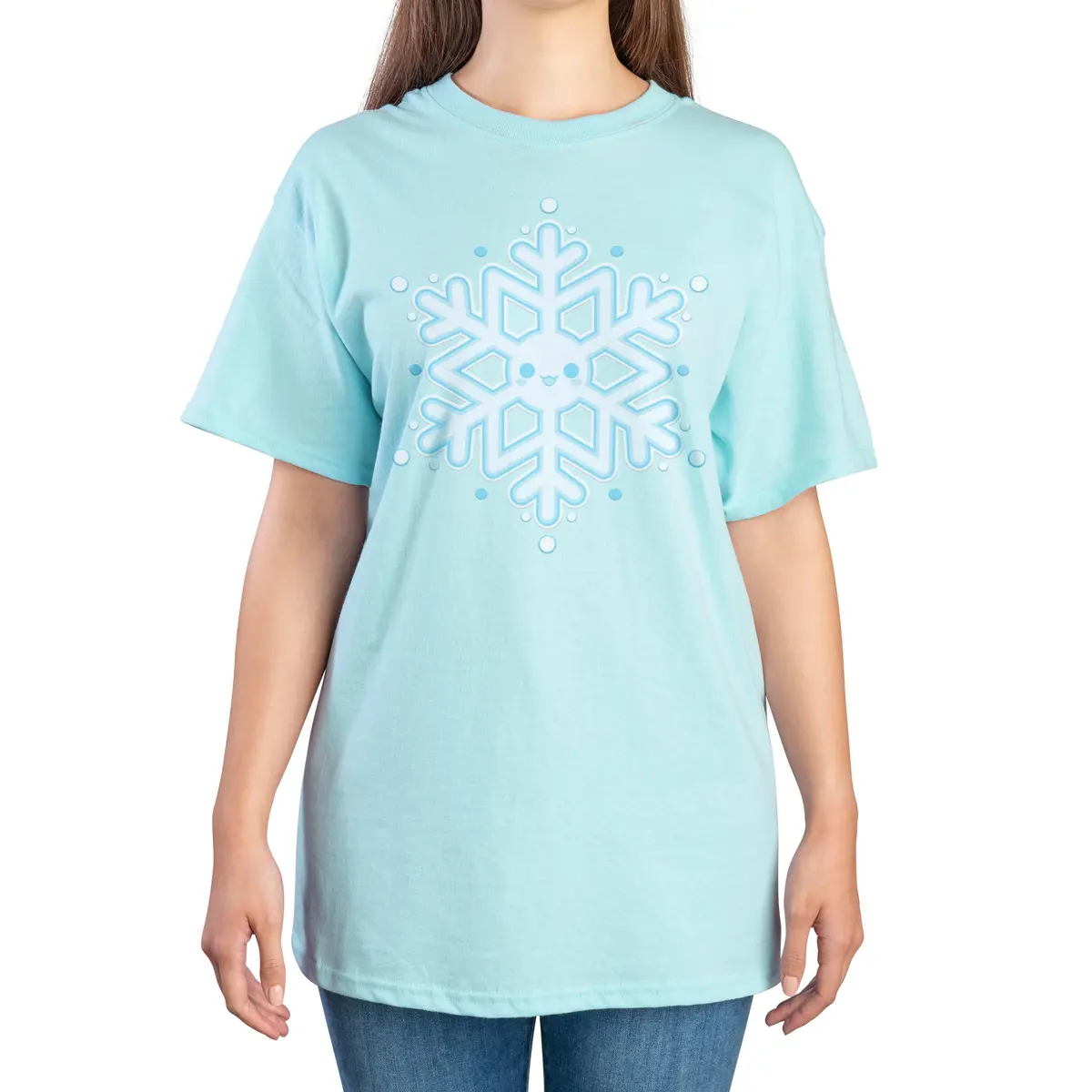 The cutest and frostiest snowflake graphic on a light blue cotton tee. Cozy and adorable -the perfect tee for the holiday season!